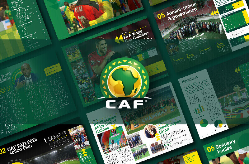 I work regularly with integrated brand and communications agency, Touchline. I had the opportunity to work on their behalf on the Activity Report for the Confederation of African Football for their Annual General Assembly. I came up with all the initial concepts right through to providing the finished magazine to their printers.